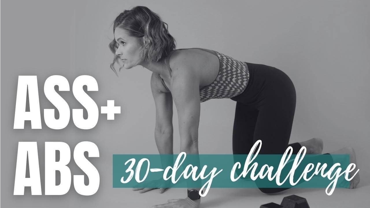 My ASS + ABS 30 Day Challenge is a daily 6 minute practice that takes you through specific exercises to wake up your abs + glutes and get them firing